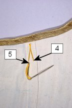 Roll the bias tape over the corset so the folded edge matches the seam created in Step 5, then hand stitch in place.